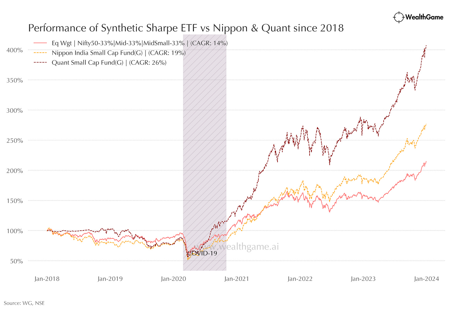 Challenging my hypothesis both Nippon and Quant Smallcap schemes significantly outperformed equal-weight synthetic etf: